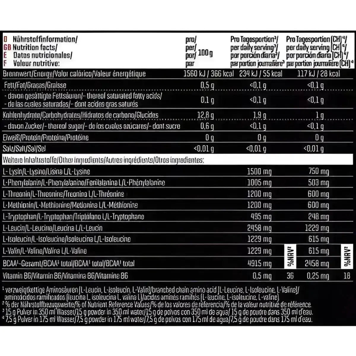 Das ultrafeine Pulver liefert alle acht wichtigen essentiellen Aminosäuren. Gerade in der Regenerationsphase tragen sie zur Reparatur und Aufbau des Muskelgewebes bei. Die drei BCAA Leucin, Isoleucin und Valin sowie das für den Stoffwechsel wichtige Vitamin B6 runden das EXTREME INSTANT EAA ab. Natürlich vegan, zuckerfrei und beste Qualität Made in Germany.