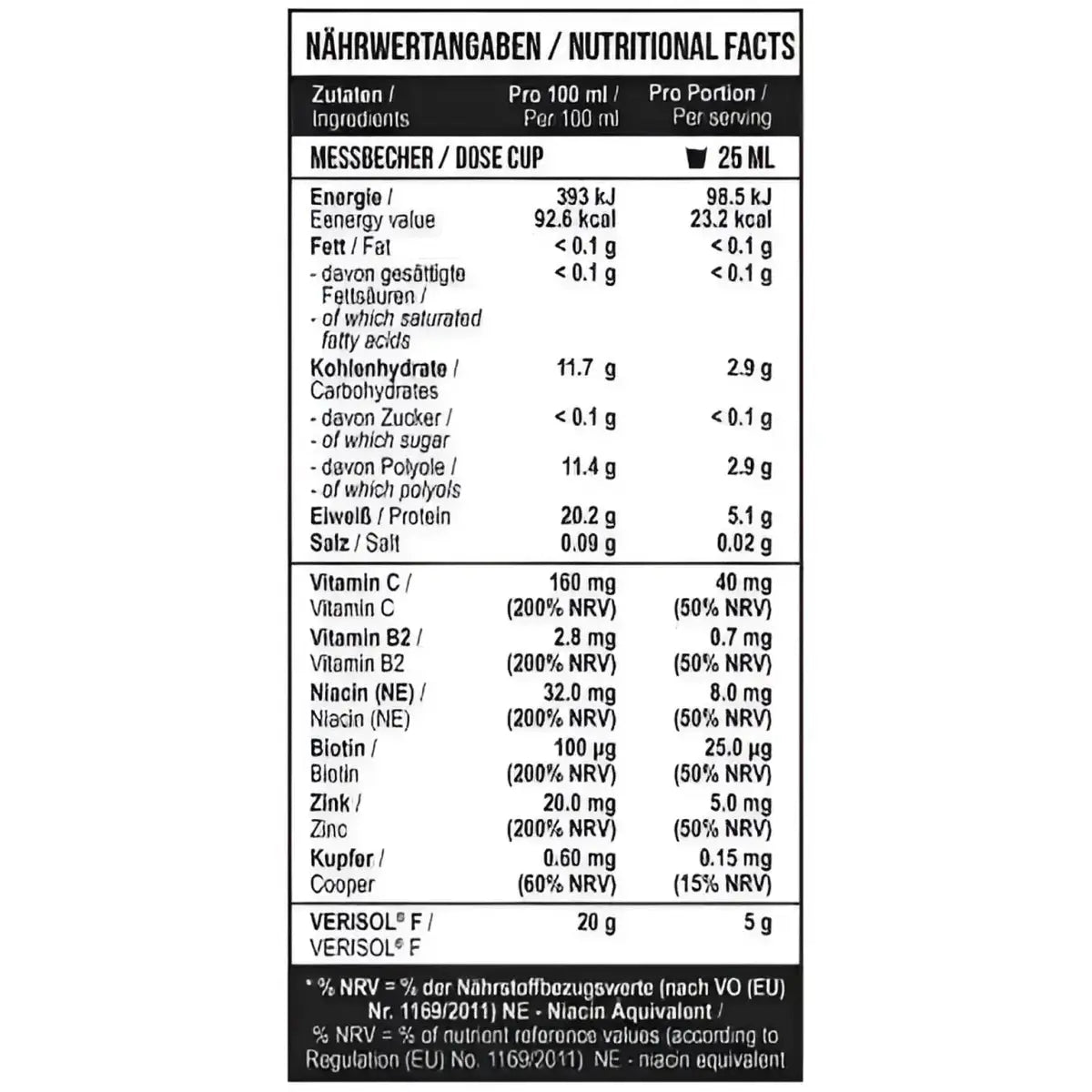 Nährwertangaben (pro 25 ml Portion):