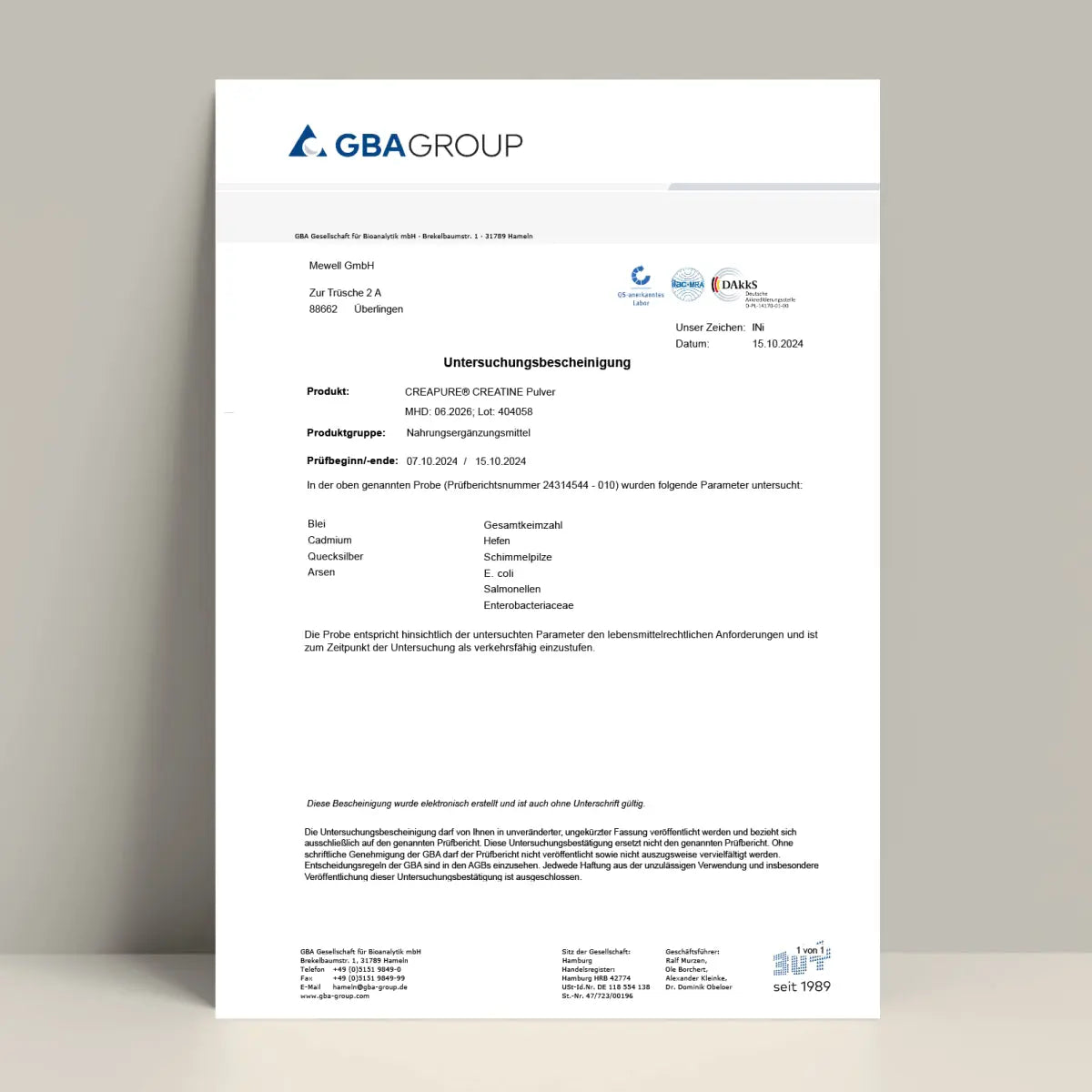 • Reines, laborgeprüftes Creapure®‑Kreatin ohne Zusätze