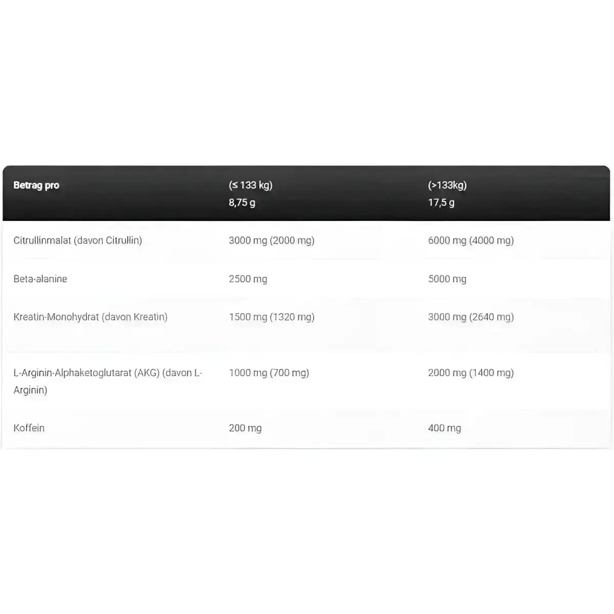 Die SHAABOOM PUMP Formel ist angereichert mit 3200 mg Beta-Alanin und 6000 mg Citrullin Malat.