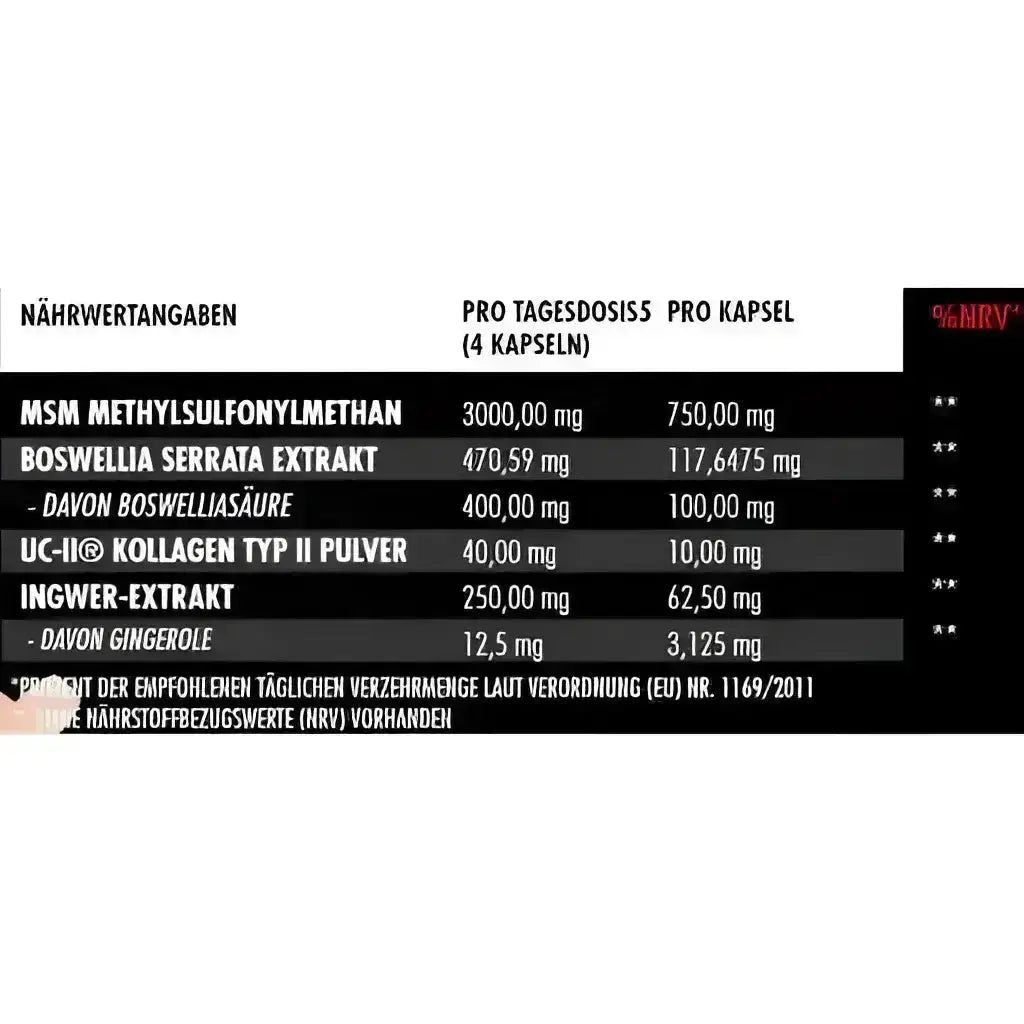 Antioxidantien-Schutz: Das Produkt enthält zudem Antioxidantien, wie beispielsweise Vitamin C und Vitamin E, die helfen können, oxidative Schäden zu reduzieren. Oxidativer Stress kann zu Entzündungen und Schäden in den Gelenken führen, daher können Antioxidantien einen schützenden Effekt haben
