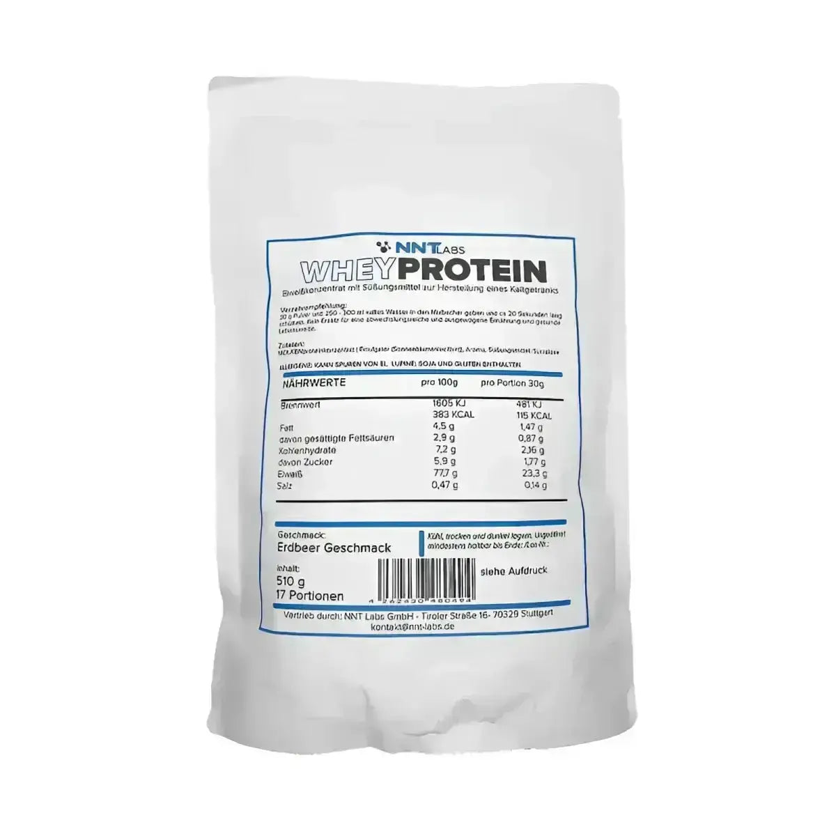 NNT Whey 510g ist ein hochwertiges Molkenproteinkonzentrat, das in Deutschland hergestellt wird. Es bietet eine cremige Konsistenz und ist glutenfrei.